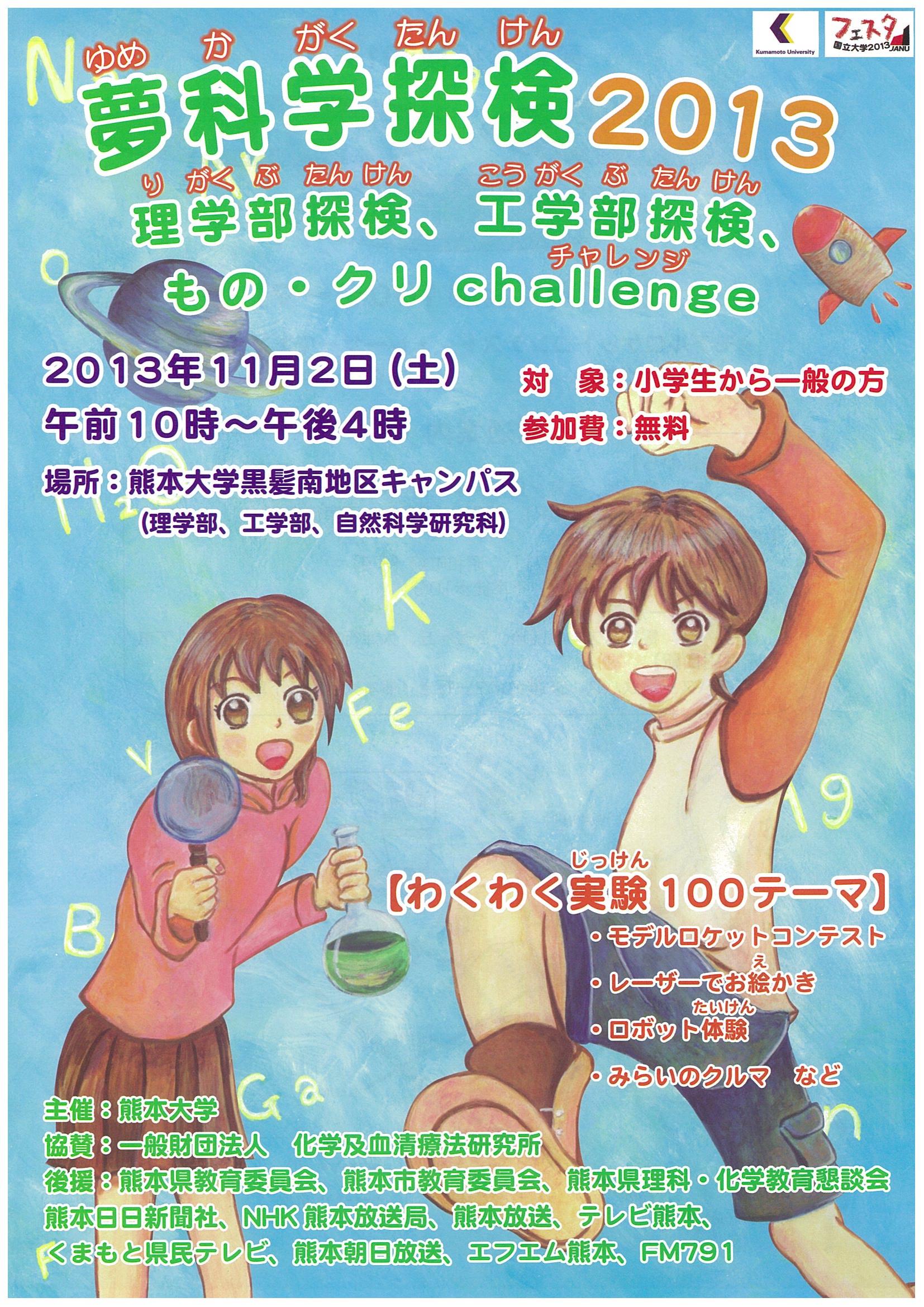 本年度の夢科学探検2013も、参加者に楽しんでいただける企画を考えています。ぜひともご参加ください。