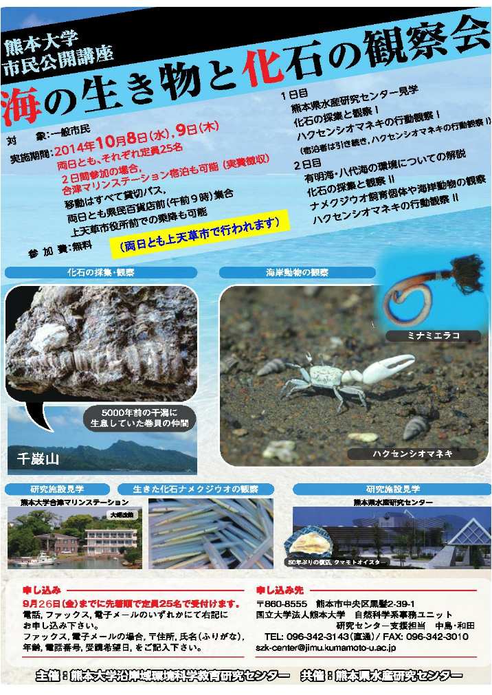 日本最大級の干潟をもつ有明海?八代海は世界的にも特異で貴重な海域です。豊富な水産資源をもつ同海域も、近年、早急に解決しなければならない多くの問題が発生しています。熊本大学沿岸域環境科学教育研究センターと熊本県水産研究センターでもこの問題に取りくんでおり、その成果を過去12年にわたり市民講座として紹介してきました。