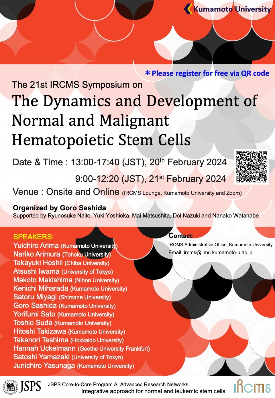- The 21st IRCMS Symposium on The Dynamics and Development of Normal and Malignant Hematopoietic Stem Cells を開催します