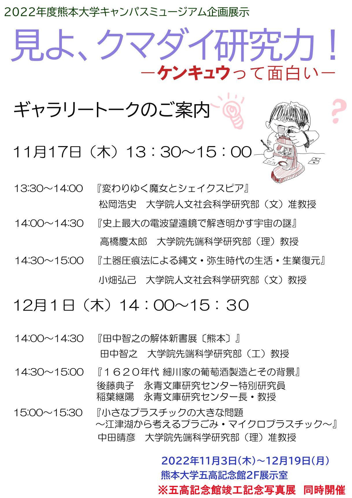熊本大学キャンパスミュージアム企画展「見よ、クマダイ研究力!-ケンキュウって面白い-」及び「五高記念館竣工記念写真展」を開催しました
